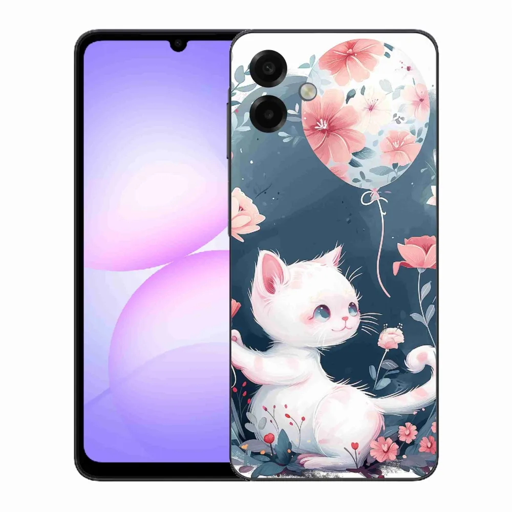 Pružný gelový obal mmCase s obrázkem na Samsung Galaxy A07 4G - kotě s balónkem