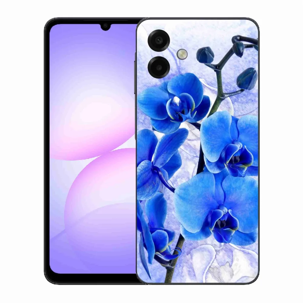 Pružný gelový obal mmCase s obrázkem na Samsung Galaxy A07 4G - modré květy