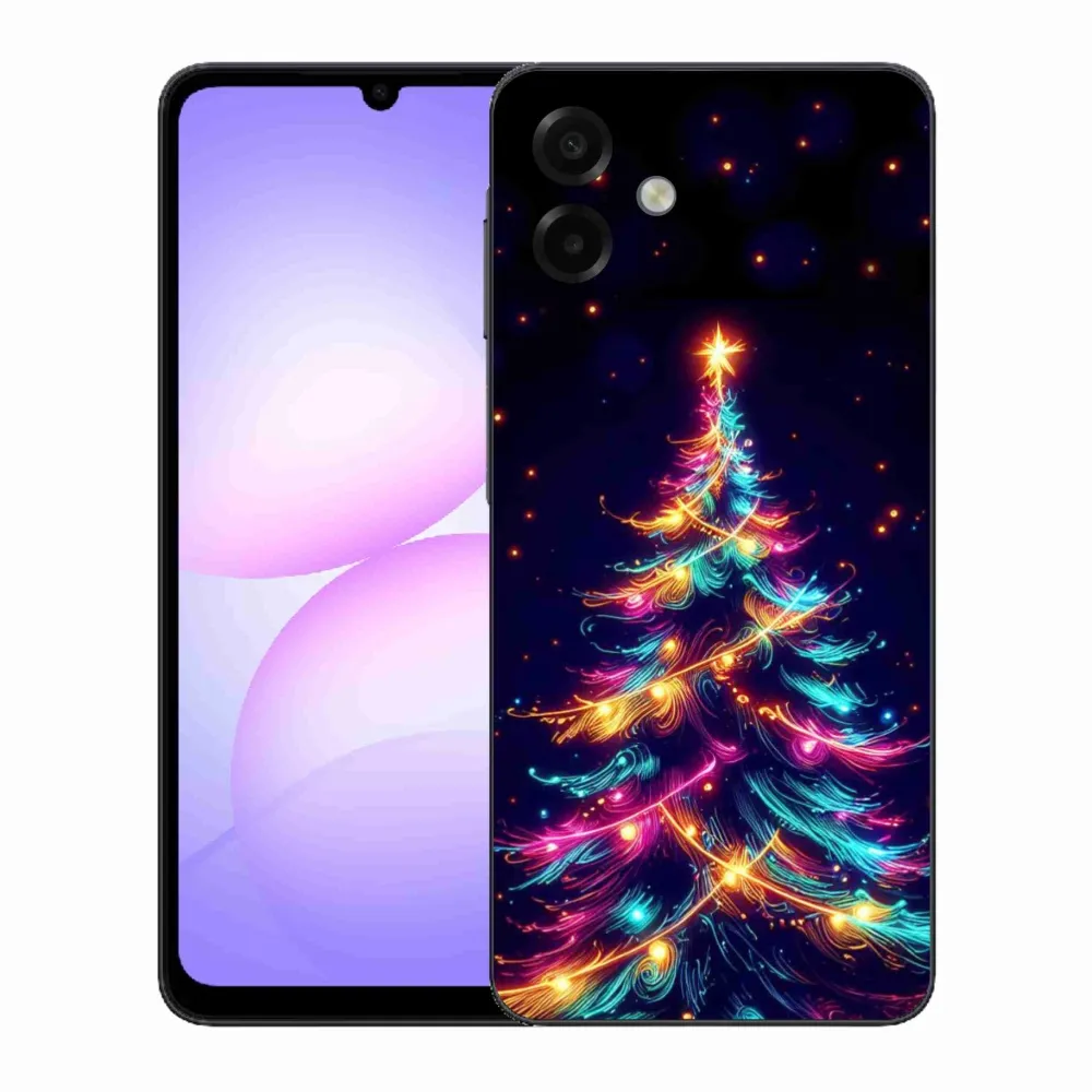 Vánoční pouzdro na Samsung Galaxy A07 4G - neonový vánoční stromek poskytuje všechny výhody gelových obalů, a to v zajímavém designu.