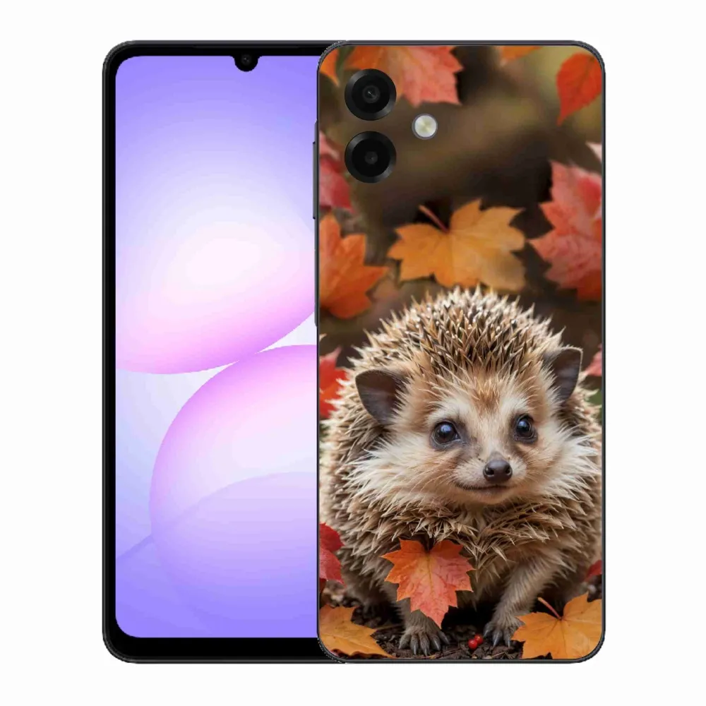 Zvířecí pouzdro na Samsung Galaxy A07 - ježek v listí poskytuje všechny výhody gelových obalů, a to v zajímavém designu.