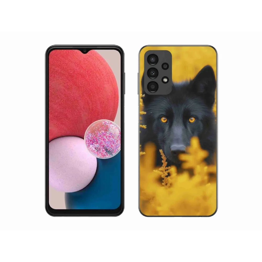 Psí pouzdro na Samsung A13 - černý vlk 2 poskytuje všechny výhody gelových obalů, a to v zajímavém designu.