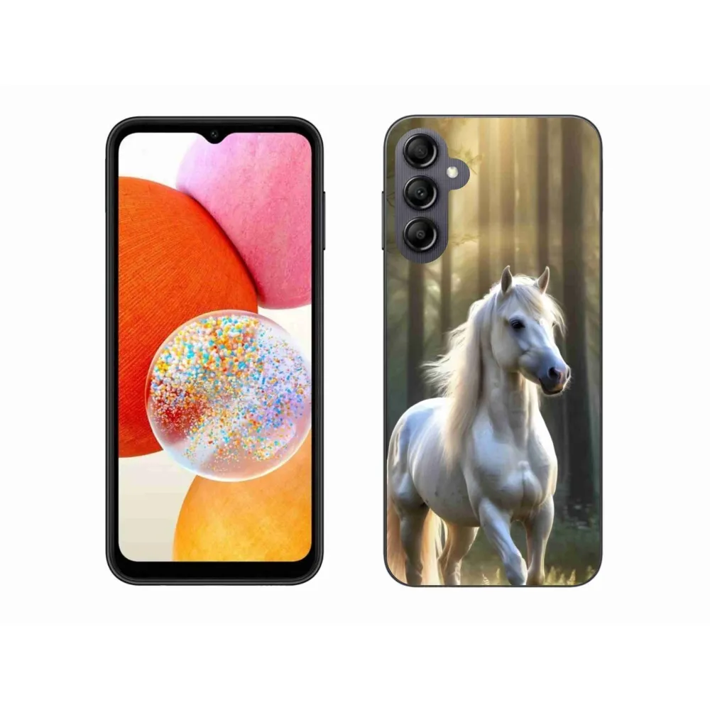 Pružný gelový obal mmCase s obrázkem na Samsung Galaxy A14 4G/5G - bílý kůň 3