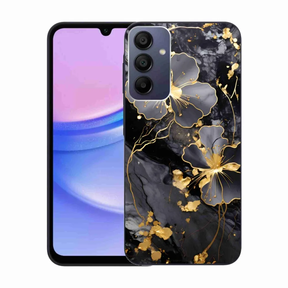 Pružný gelový obal mmCase s obrázkem na Samsung Galaxy A15/5G - zlaté květy