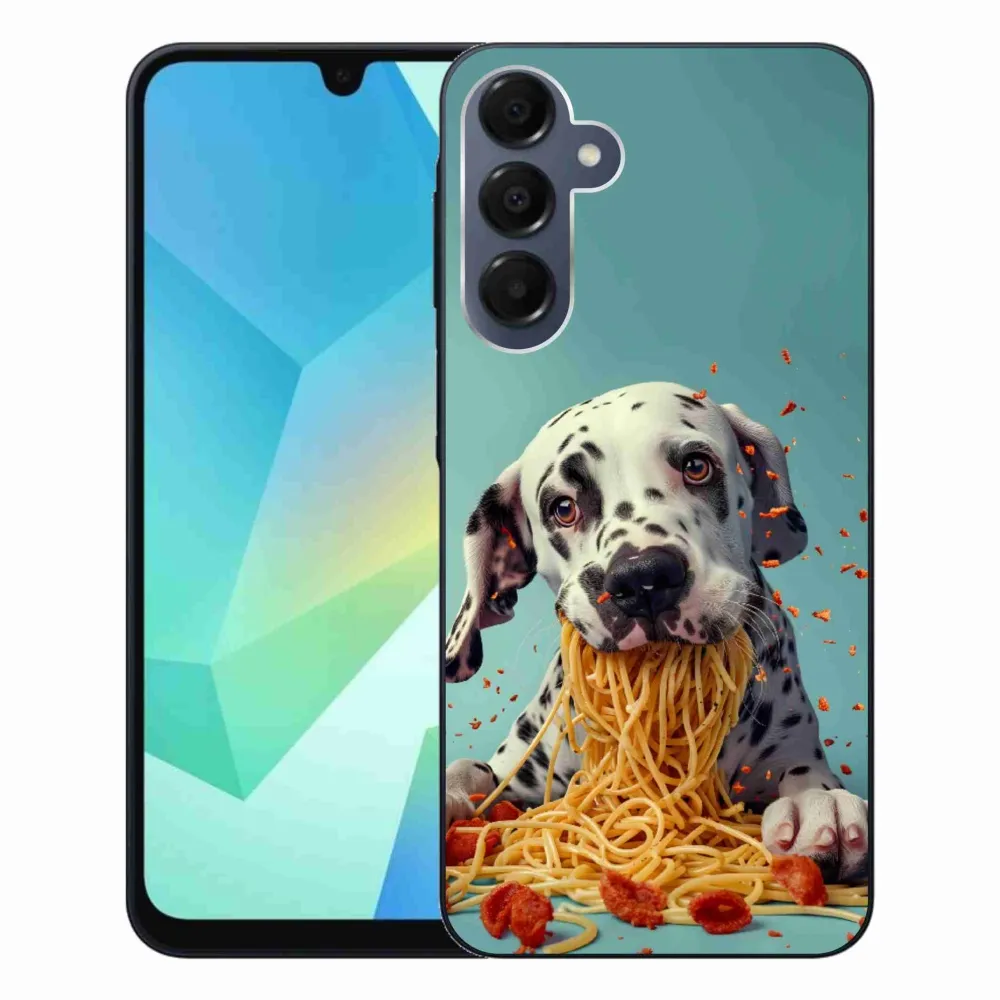 Pružný glový obal mmCase s obrázkem na Samsung Galaxy A16 4G/5G - dalmatin a špagety