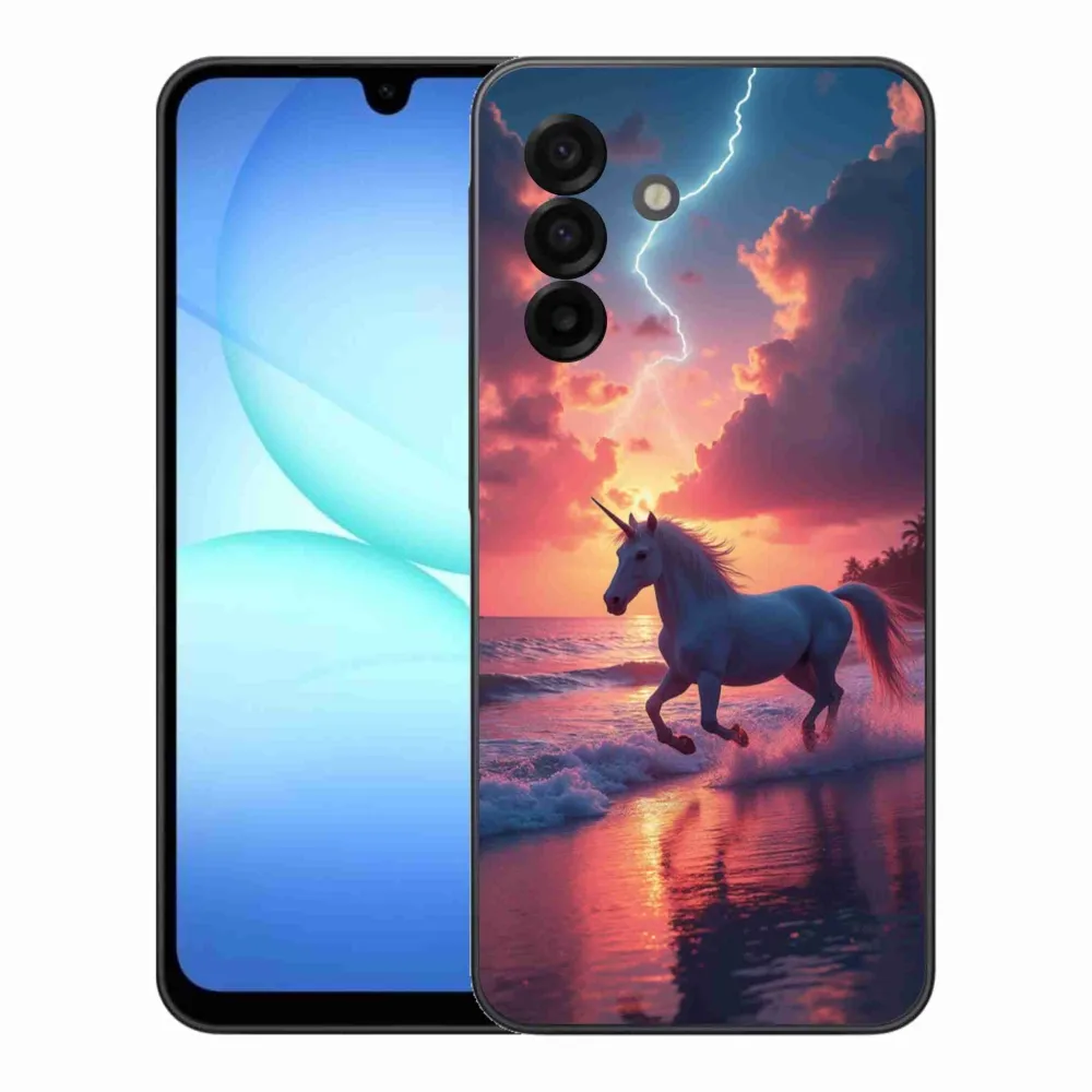 Pouzdro s motivem koně na Samsung Galaxy A17 4G/5G - jednorožec na pláži poskytuje všechny výhody gelových krytů, a to v zajímavém designu.