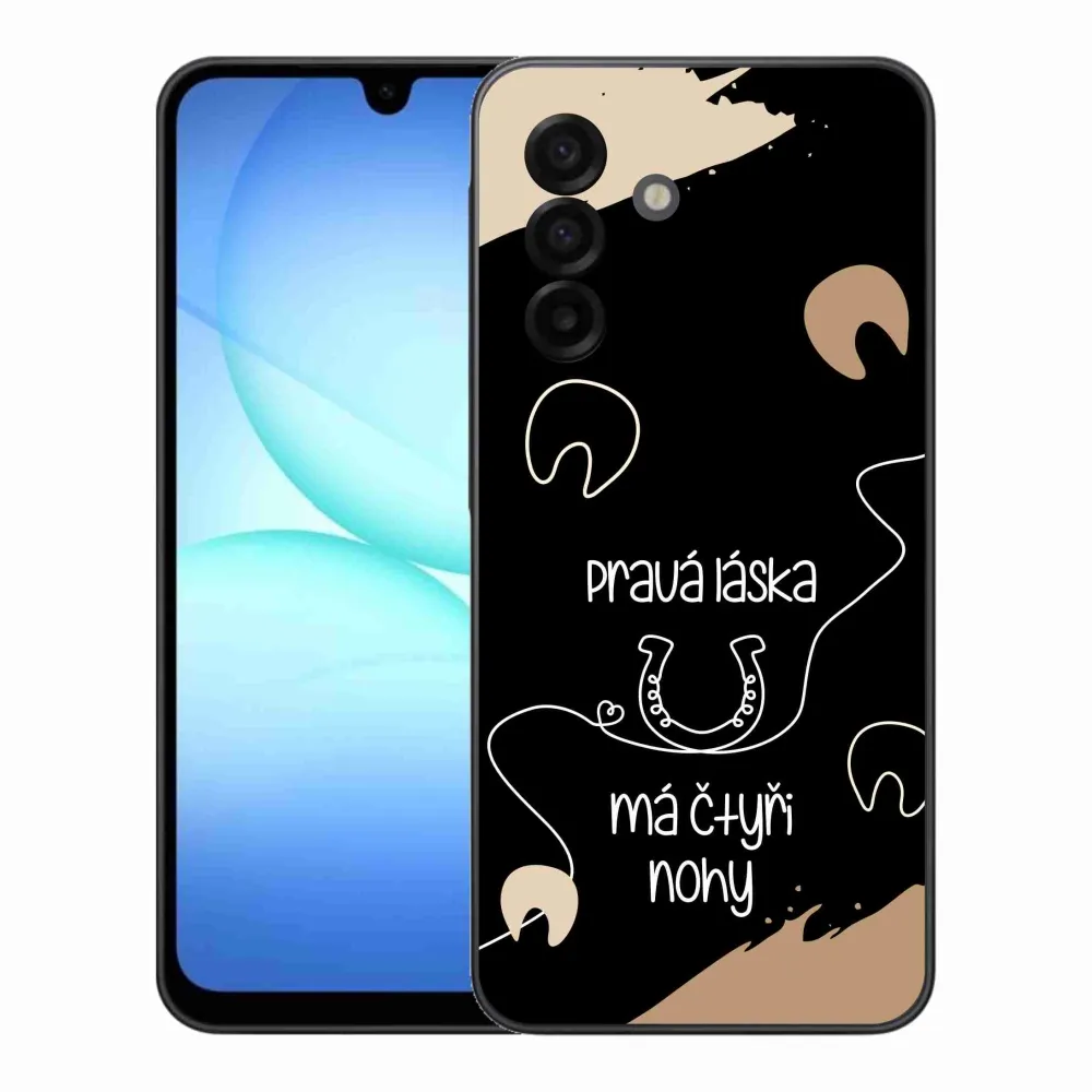 Pouzdro s motivem koně na Samsung Galaxy A17 4G/5G - koňský motiv černé pozadí poskytuje všechny výhody gelových krytů, a to v zajímavém designu.