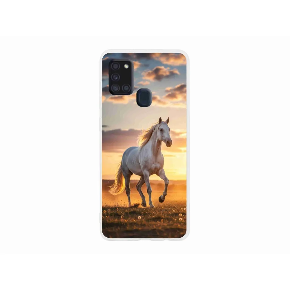 Pružný gelový obal mm Case s obrázkem na Samsung Galaxy A21s - běžící bílý kůň 2