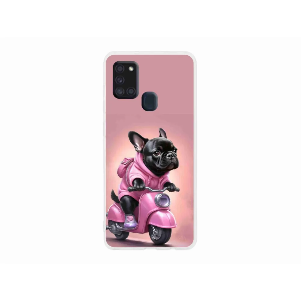 Pružný gelový obal mm Case s obrázkem na Samsung Galaxy A21s - francouzský buldoček na skútru