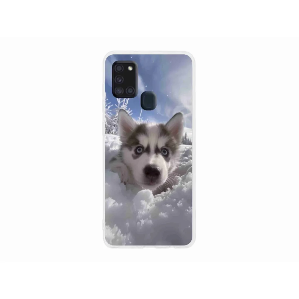 Pružný gelový obal mm Case s obrázkem na Samsung Galaxy A21s - husky ve sněhu