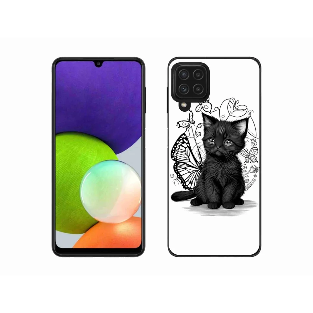 Pružný gelový obal mmCase s obrázkem na Samsung Galaxy A22 4G - černé kotě