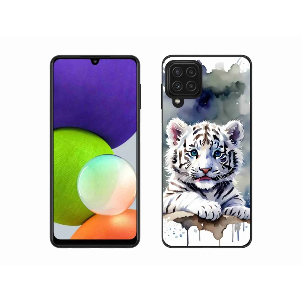 Psí pouzdro na Samsung Galaxy A22 4G - mládě bílého tygra poskytuje všechny výhody gelových obalů, a to v zajímavém designu.