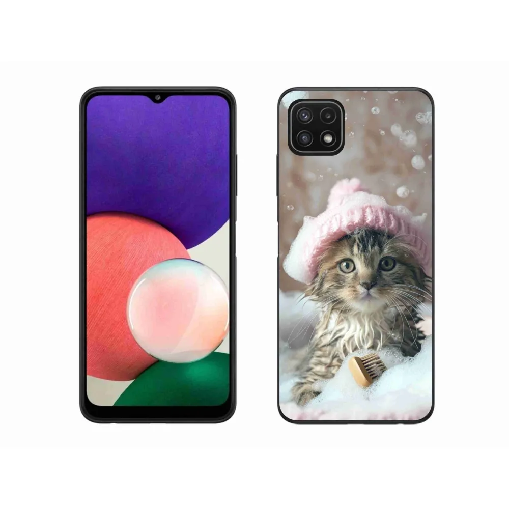 Gelový kryt mmCase na Samsung Galaxy A22 5G - kotě a koupel