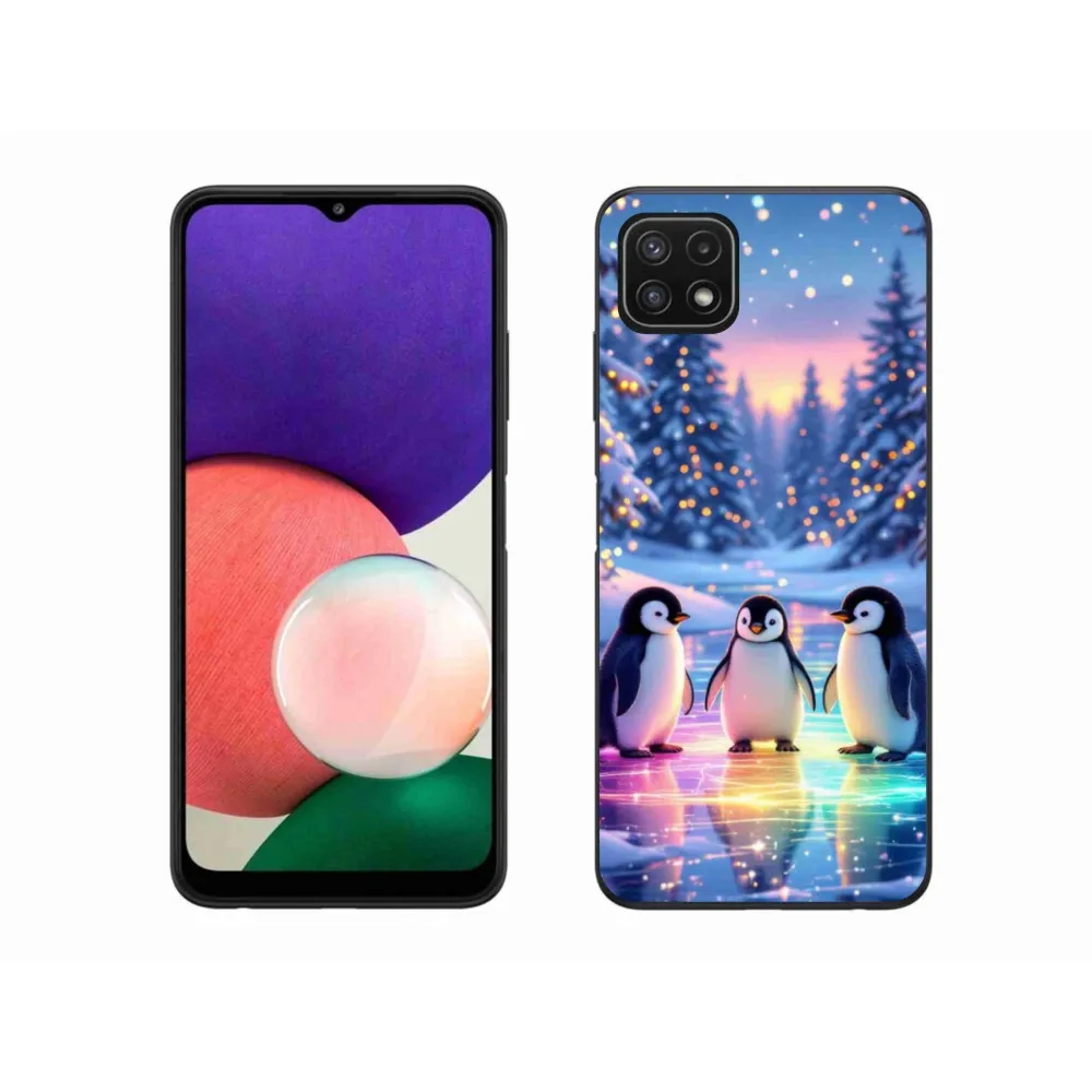 Vánoční pouzdro na Samsung Galaxy A22 5G - tučnáci poskytuje všechny výhody gelových obalů, a to v zajímavém designu.