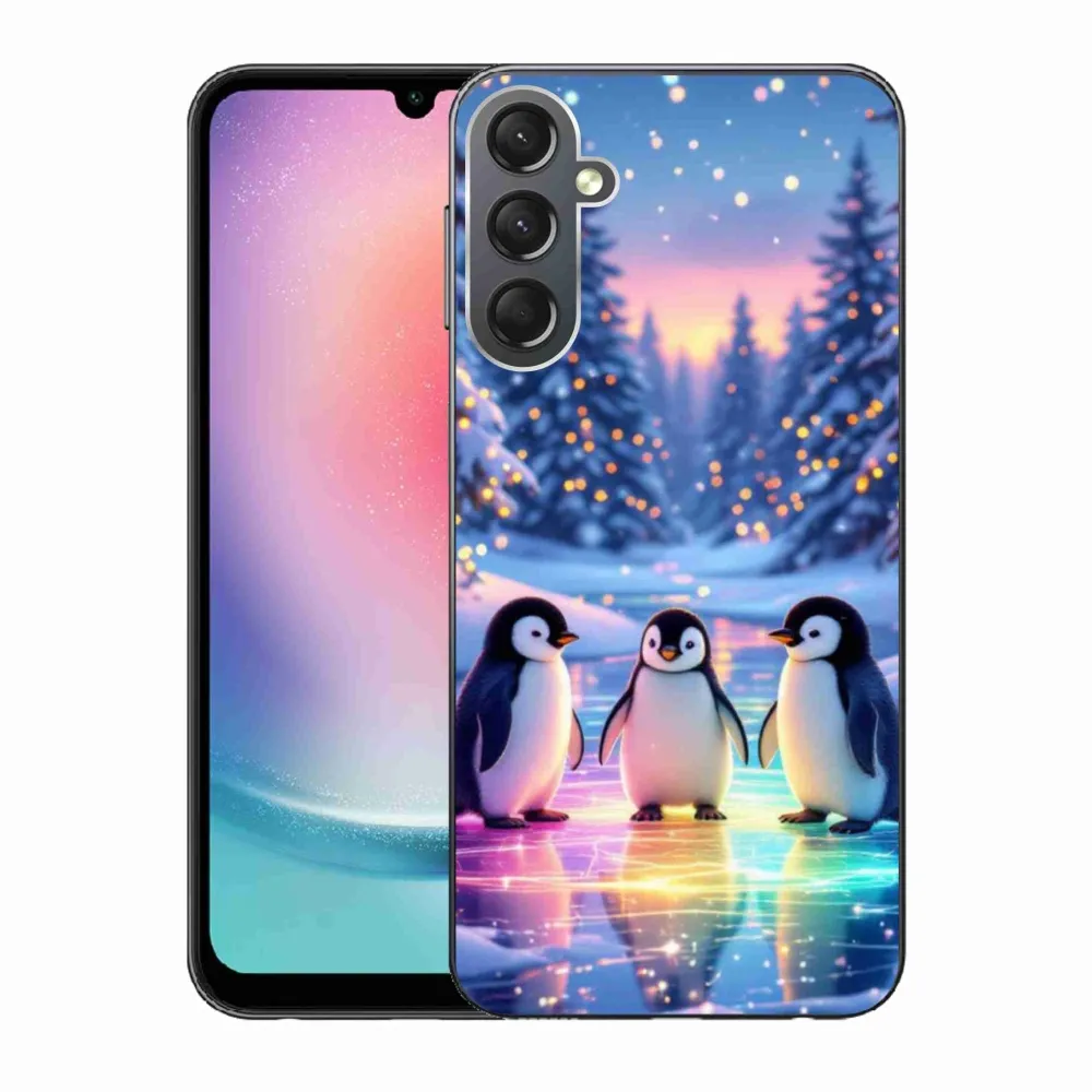 Vánoční pouzdro na Samsung Galaxy A24 - tučnáci poskytuje všechny výhody gelových obalů, a to v zajímavém designu.