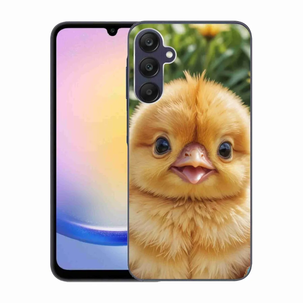 Zvířecí pouzdro na Samsung Galaxy A25 5G - veselé kuřátko poskytuje všechny výhody gelových obalů, a to v zajímavém designu.