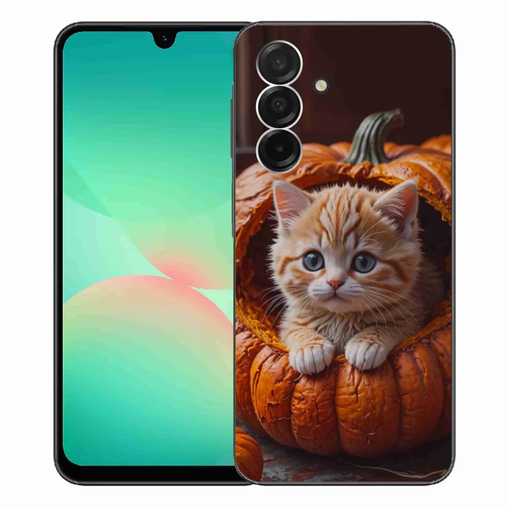 Gelový kryt mmCase na Samsung Galaxy A26 5G - kotě a dýně 2