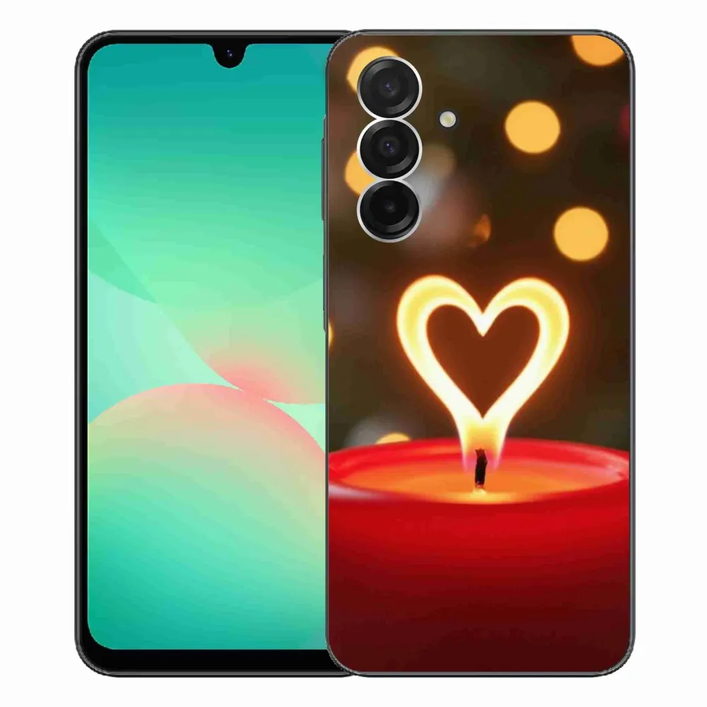 Vánoční pouzdro na Samsung Galaxy A26 5G - srdce z plamene poskytuje všechny výhody gelových obalů, a to v zajímavém designu.
