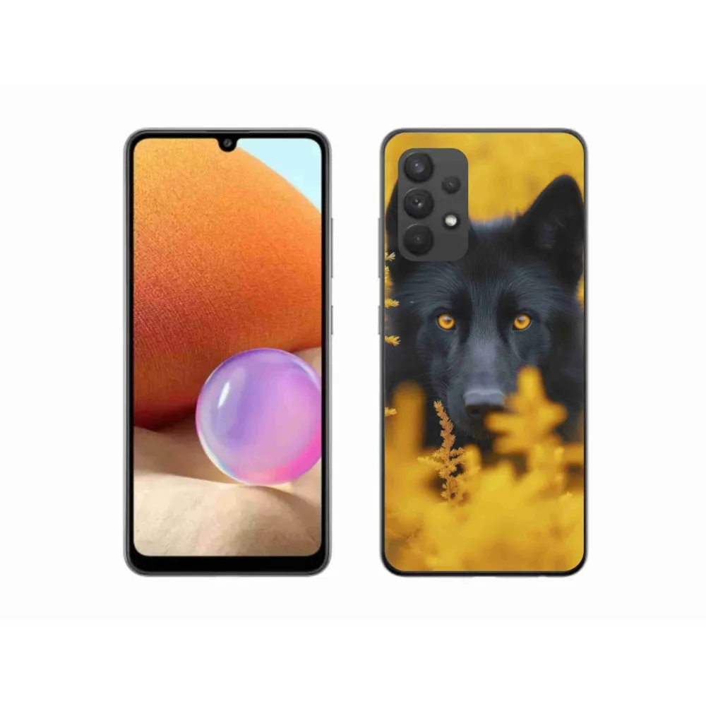 Pružný gelový obal mmCase s obrázkem na Samsung Galaxy A32 4G - černý vlk 2