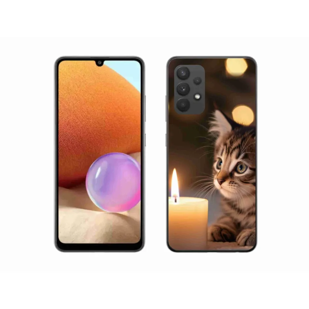 Pružný gelový obal mmCase s obrázkem na Samsung Galaxy A32 4G - kotě a svíčka