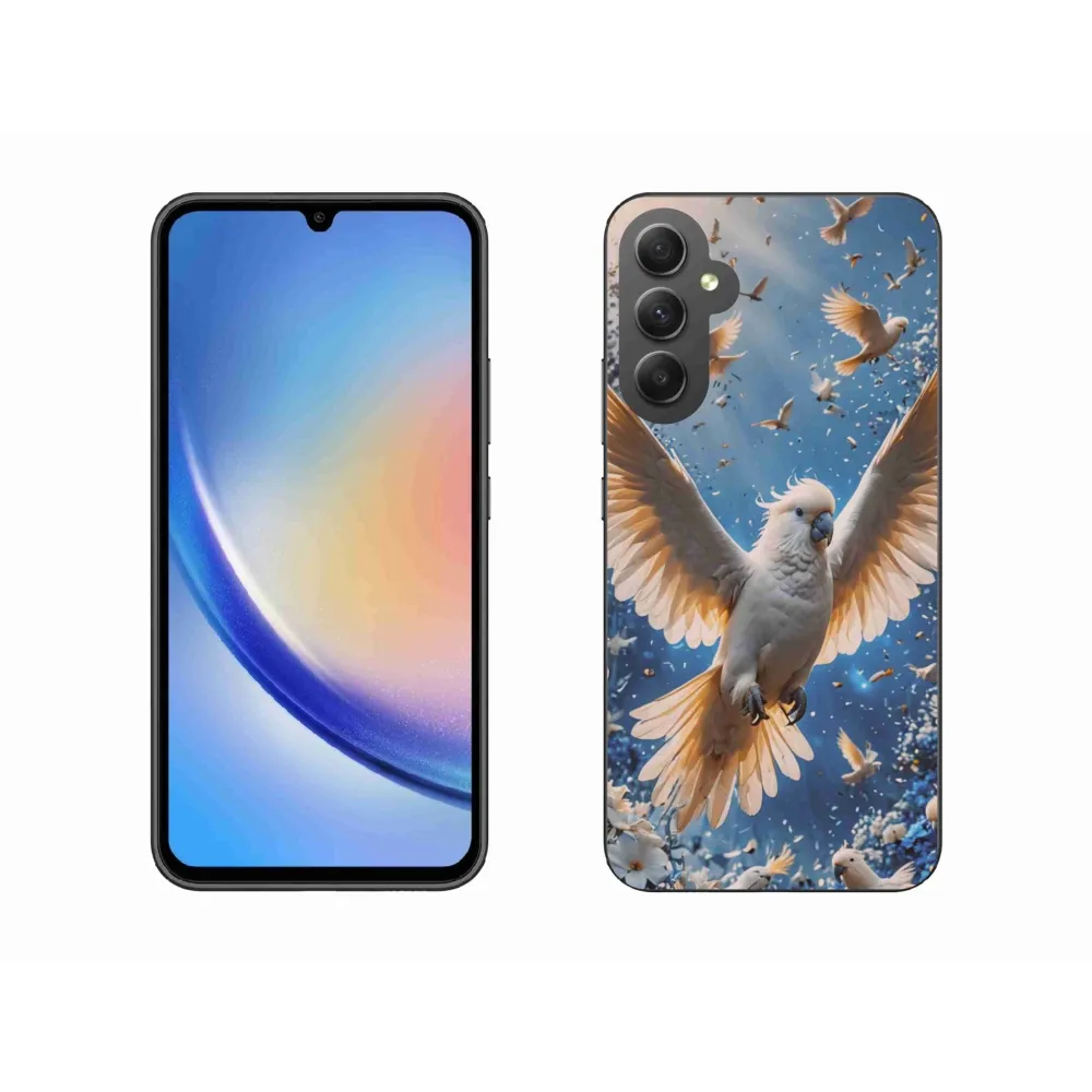 Pružný gelový obal mmCase s obrázkem na Samsung Galaxy A34 5G - papoušek kakadu