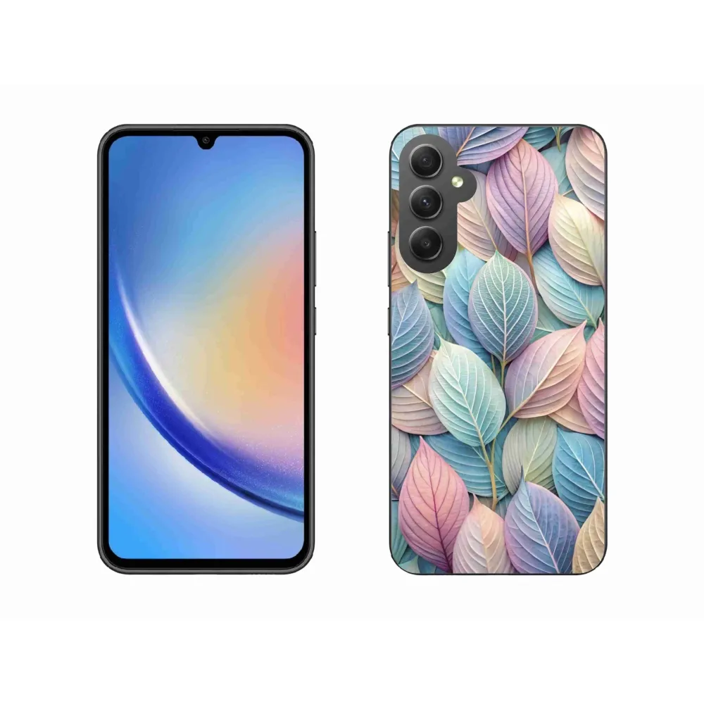 Pouzdro na Samsung Galaxy A34 5G - pastelové listy poskytuje všechny výhody gelových obalů, a to v zajímavém designu.