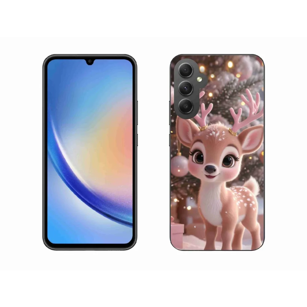 Vánoční pouzdro na Samsung Galaxy A34 5G - roztomilý sob poskytuje všechny výhody gelových obalů, a to v zajímavém designu.