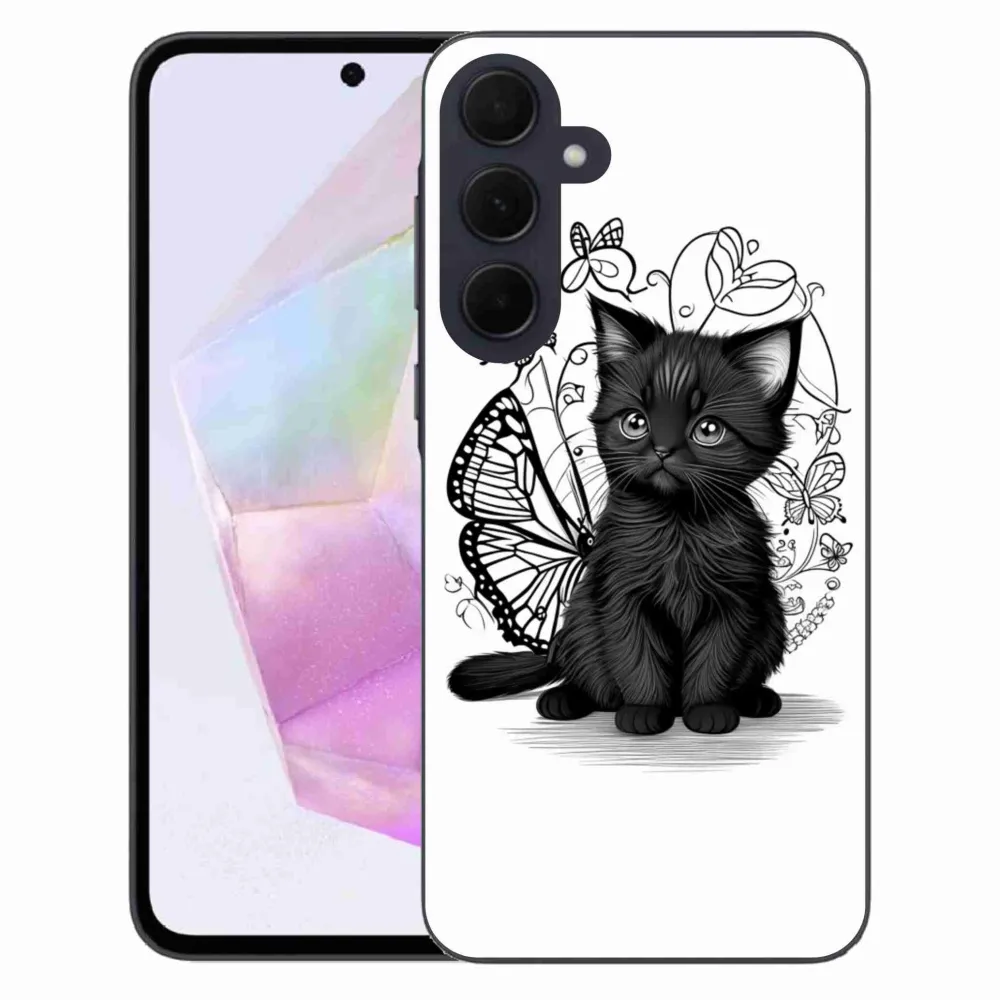Kočičí pouzdro na Samsung Galaxy A35 5G - černé kotě poskytuje všechny výhody gelových obalů, a to v zajímavém designu.