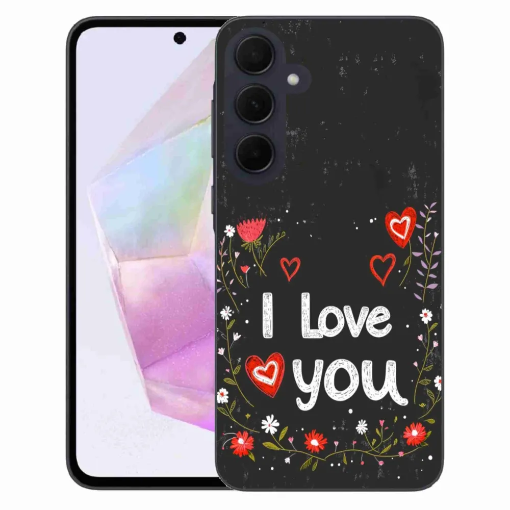 Pouzdro na Samsung Galaxy A35 5G - I love you černé pozadí poskytuje všechny výhody gelových obalů, a to v zajímavém designu.