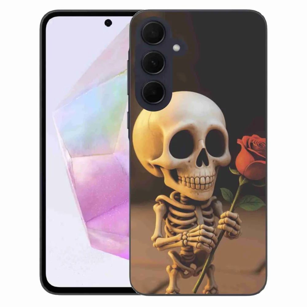 Pouzdro na Samsung Galaxy A35 5G - kostlivec s růží poskytuje všechny výhody gelových obalů, a to v zajímavém designu.