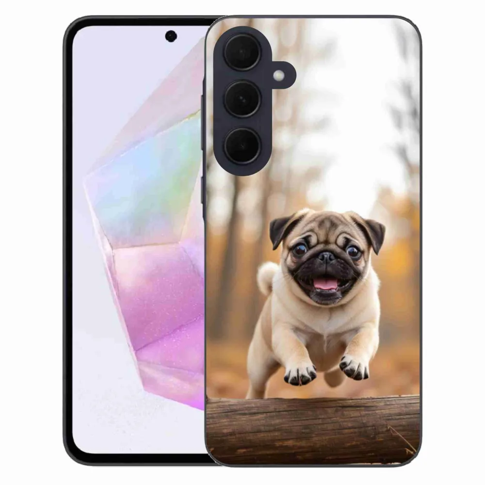 Psí pouzdro na Samsung Galaxy A35 5G - mops 2 poskytuje všechny výhody gelových obalů, a to v zajímavém designu.