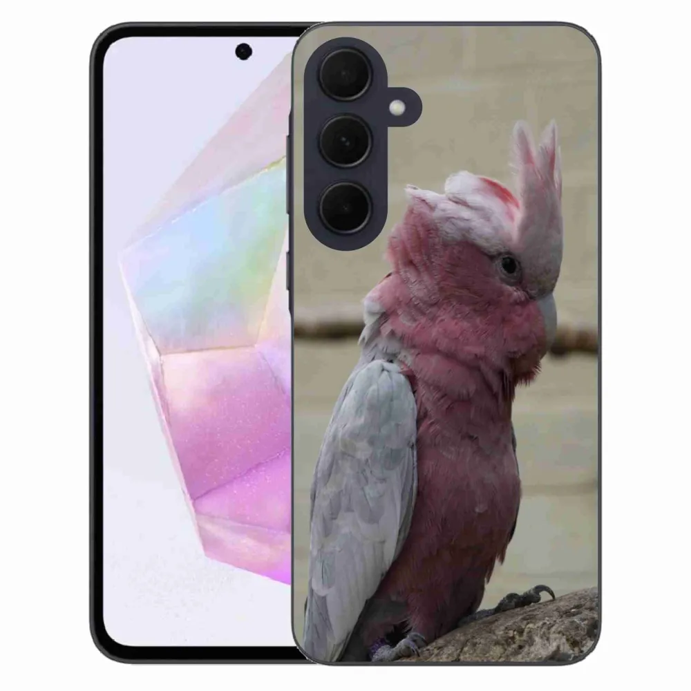 Zvířecí pouzdro na Samsung Galaxy A35 5G - papoušek kakadu růžový poskytuje všechny výhody gelových obalů, a to v zajímavém designu.