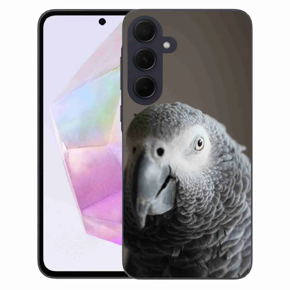Zvířecí pouzdro na Samsung Galaxy A35 5G - papoušek žako 2 poskytuje všechny výhody gelových obalů, a to v zajímavém designu.