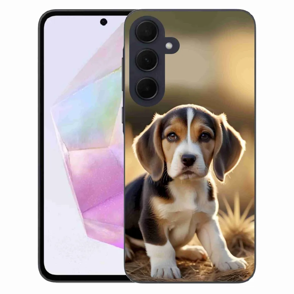 Psí pouzdro na Samsung Galaxy A35 5G - roztomilý bígl poskytuje všechny výhody gelových obalů, a to v zajímavém designu.
