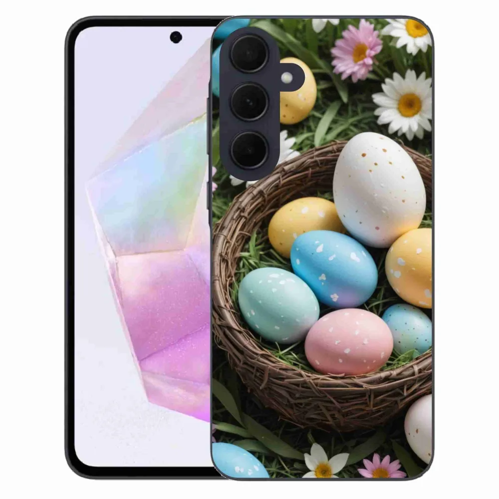Velikonoční pouzdro na Samsung Galaxy A35 5G - velikonoční vajíčka 2 poskytuje všechny výhody gelových obalů, a to v zajímavém designu.