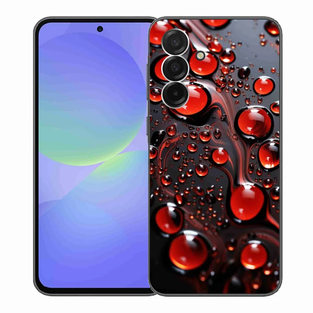 Pružný gelový obal mmCase s obrázkem na Samsung Galaxy A36 5G - červené kapky 2