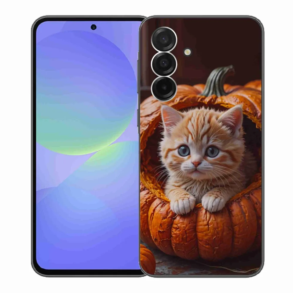 Pružný gelový obal mmCase s obrázkem na Samsung Galaxy A36 5G - kotě a dýně 2