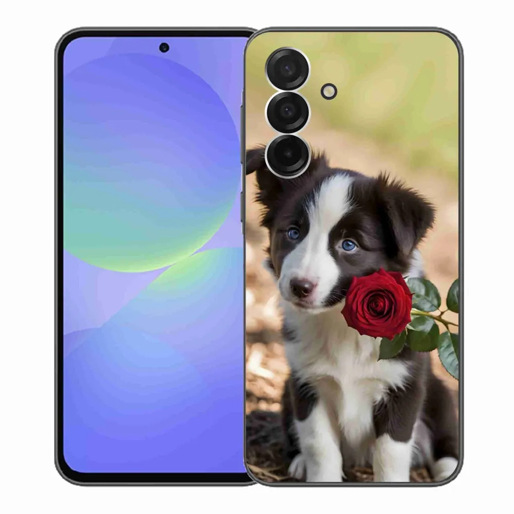 Psí pouzdro na Samsung Galaxy A36 5G - roztomilá border kolie s růží poskytuje všechny výhody gelových obalů, a to v zajímavém designu.
