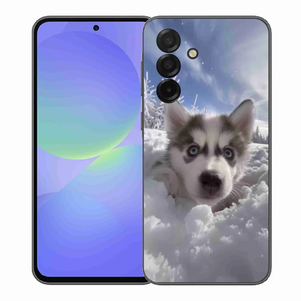 Psí pouzdro na Samsung Galaxy A37 5G - husky ve sněhu poskytuje všechny výhody gelových obalů, a to v zajímavém designu.
