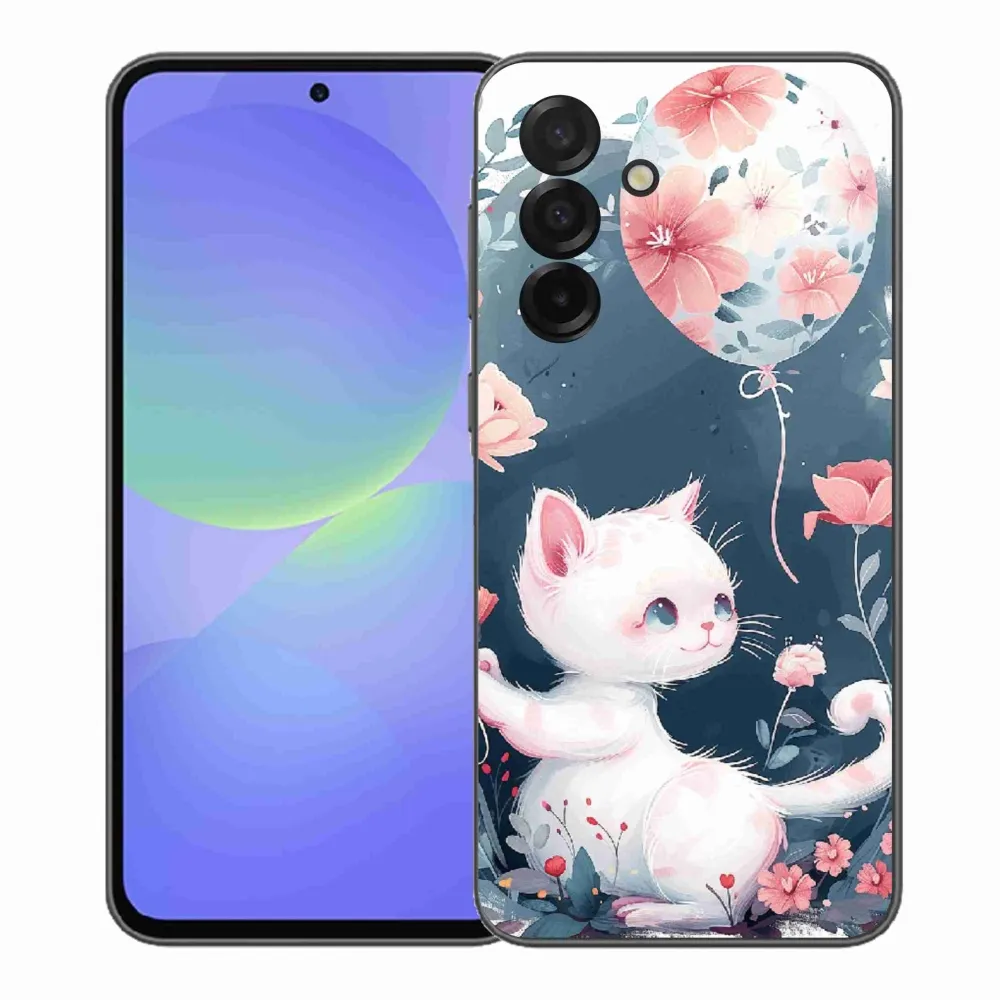 Pružný gelový obal mmCase s obrázkem na Samsung Galaxy A37 5G - kotě s balónkem