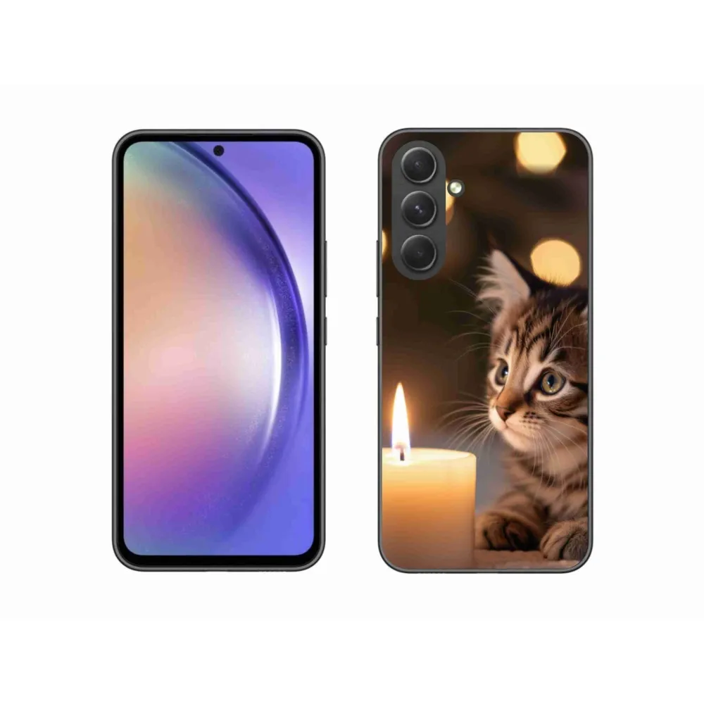 Pružný gelový obal mmCase s obrázkem na Samsung Galaxy A54 5G - kotě a svíčka