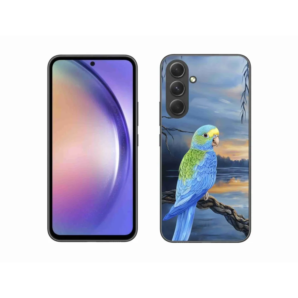 Zvířecí pouzdro na Samsung Galaxy A34 5G - modrý papoušek poskytuje všechny výhody gelových obalů, a to v zajímavém designu.