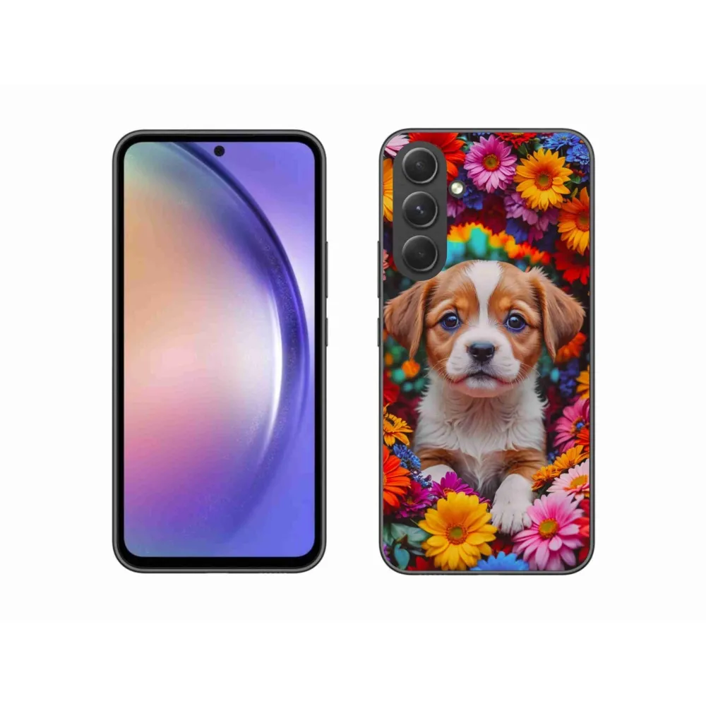 Psí pouzdro na Samsung Galaxy A34 5G - roztomilé štěně poskytuje všechny výhody gelových obalů, a to v zajímavém designu.