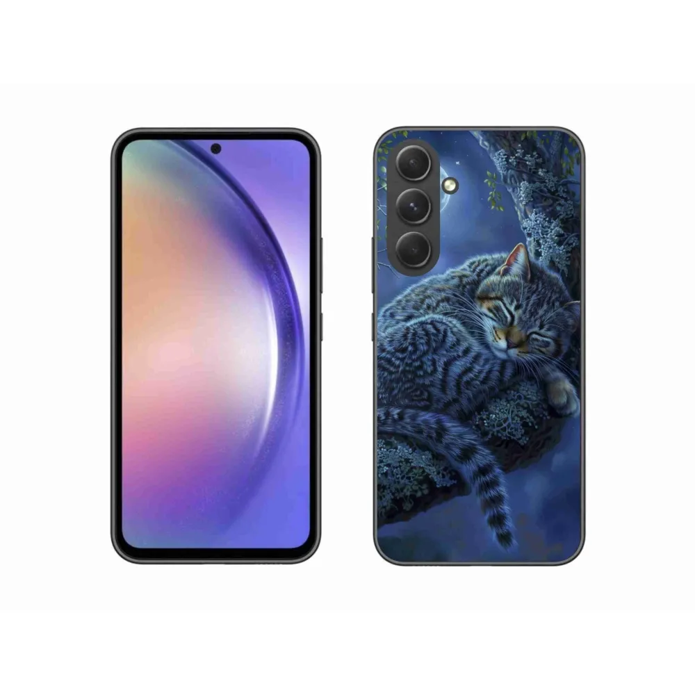 Kočičí pouzdro na Samsung Galaxy A34 5G - spící kočka poskytuje všechny výhody gelových obalů, a to v zajímavém designu.