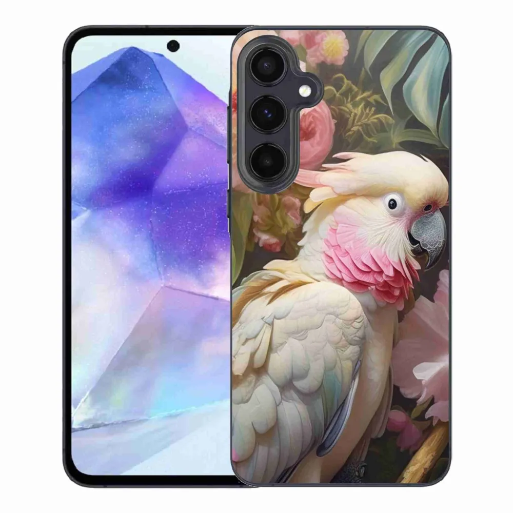 Zvířecí pouzdro na Samsung Galaxy A55 5G - papoušek kakadu růžový 2 poskytuje všechny výhody gelových obalů, a to v zajímavém designu.