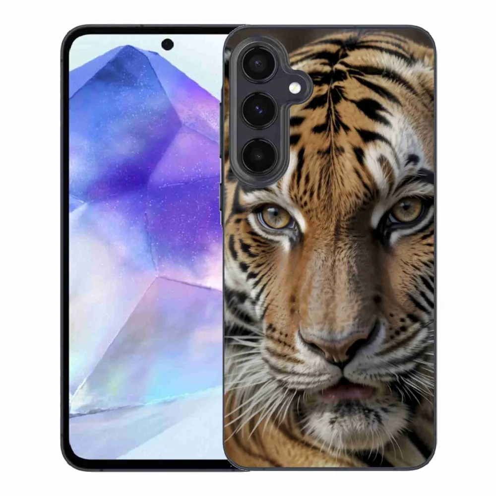 Kočičí pouzdro na Samsung Galaxy A55 5G - tygří pohled poskytuje všechny výhody gelových obalů, a to v zajímavém designu.
