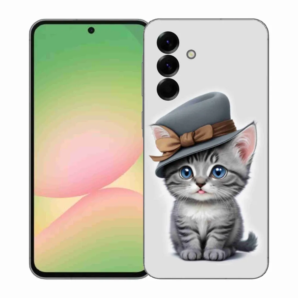 Pružný gelový obal mmCase s obrázkem na Samsung Galaxy A57 5G - kotě s kloboukem