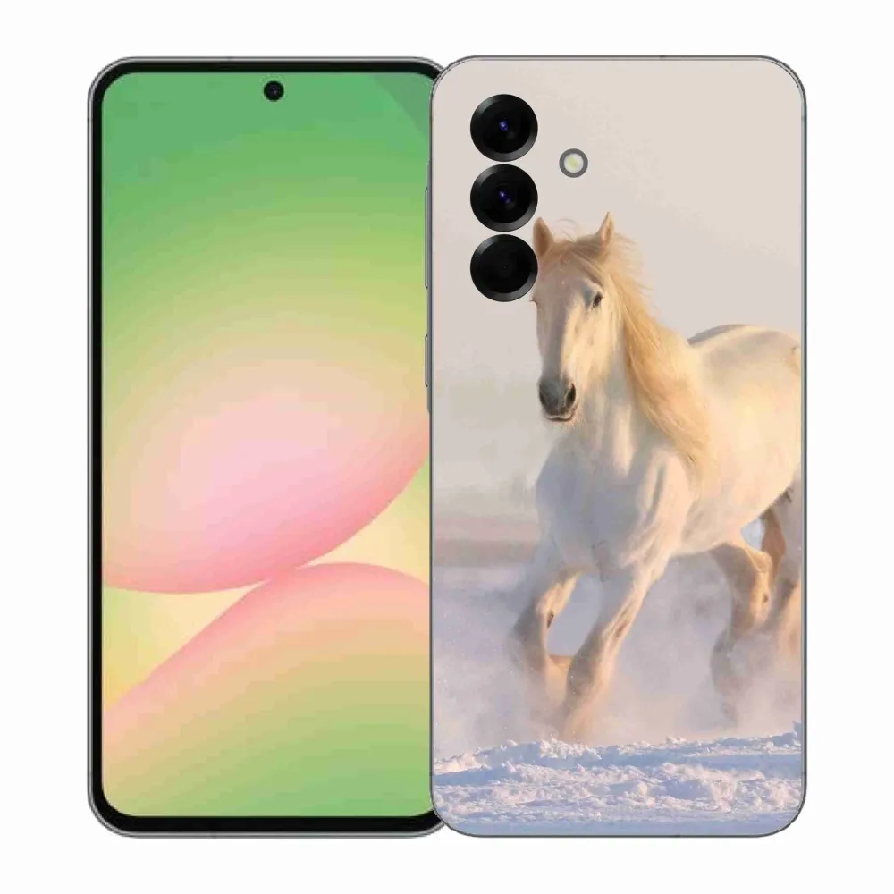 Gelový kryt mmCase na Samsung Galaxy A57 5G - kůň ve sněhu