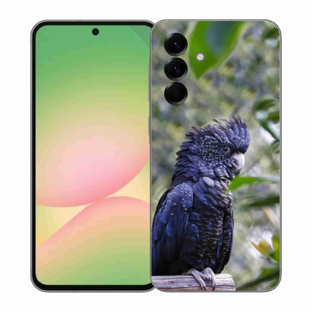Ptačí pouzdro na Samsung Galaxy A57 5G - papoušek kakadu černý poskytuje všechny výhody gelových obalů, a to v zajímavém designu.