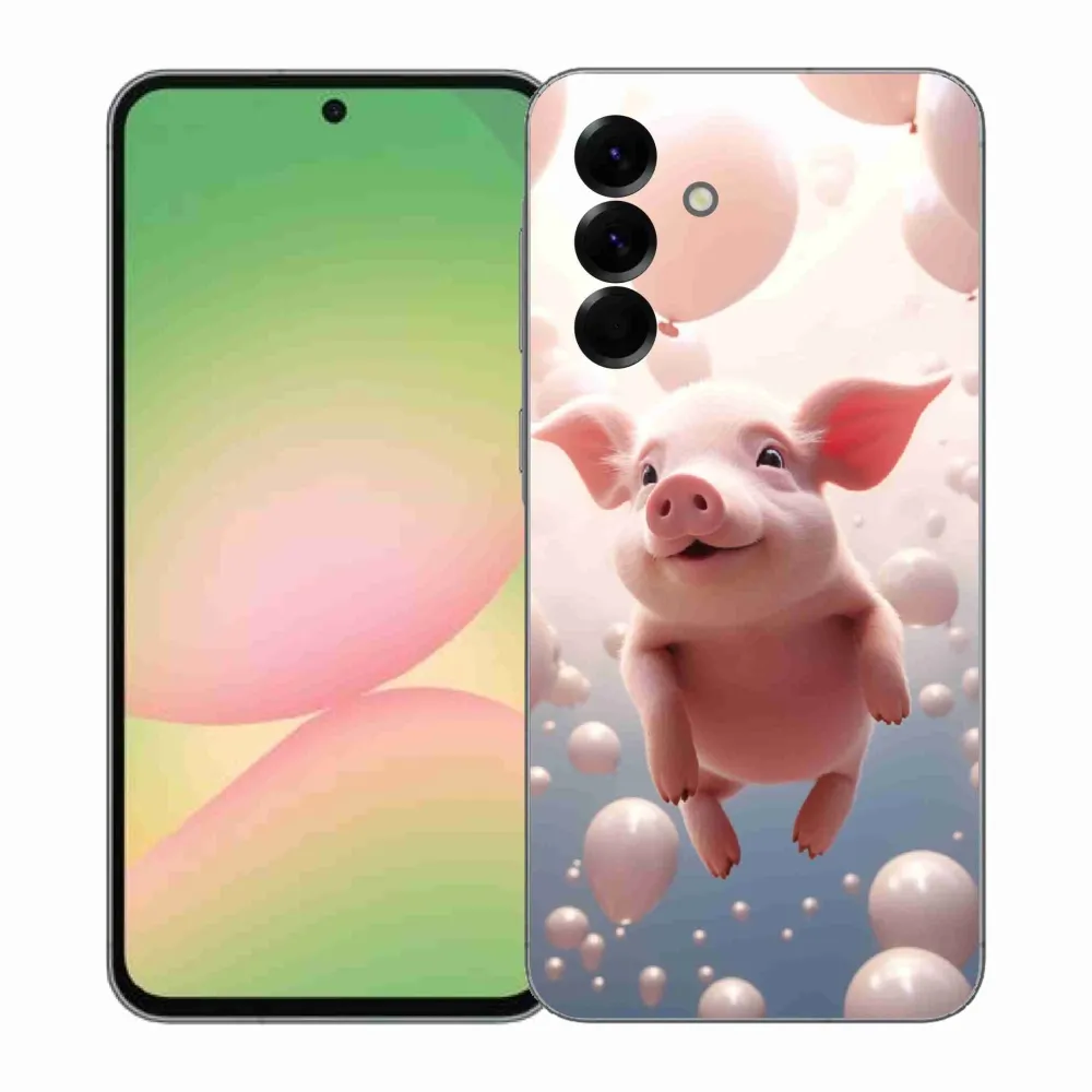 Zvířecí pouzdro na Samsung Galaxy A57 5G - prasátko s balónky poskytuje všechny výhody gelových obalů, a to v zajímavém designu.