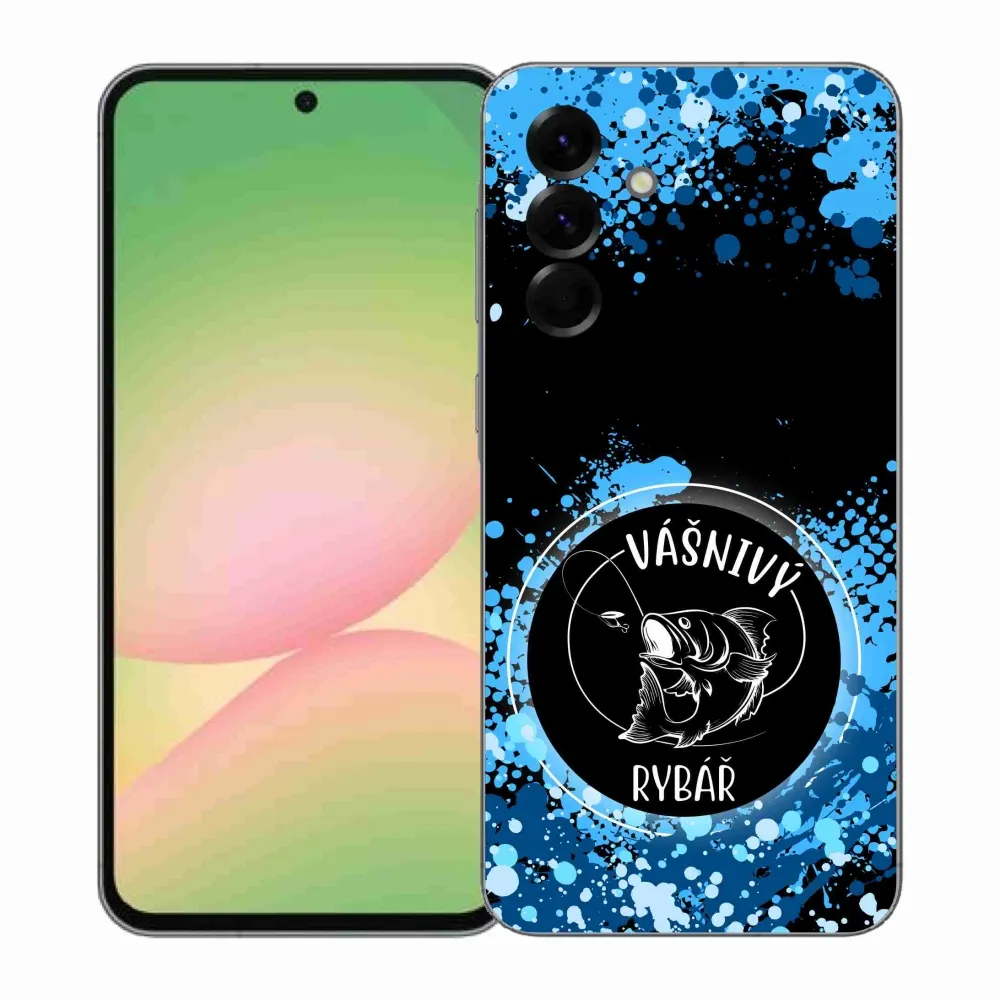 Pružný gelový obal mmCase s obrázkem na Samsung Galaxy A57 5G - vášnivý rybář černé pozadí